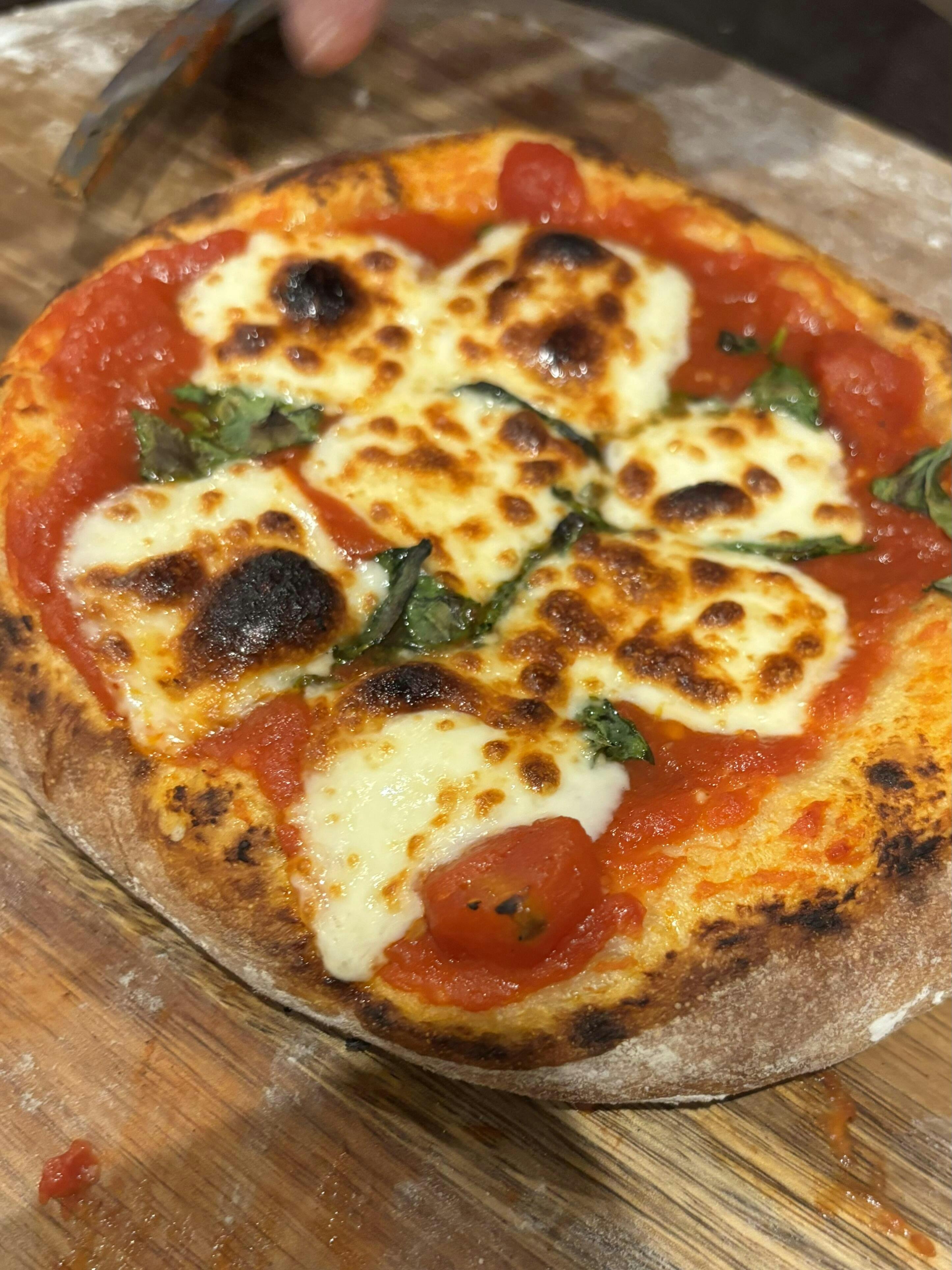 高温で焼くことで、ピザ表面の余計な水分を飛ばし外はカリカリ!