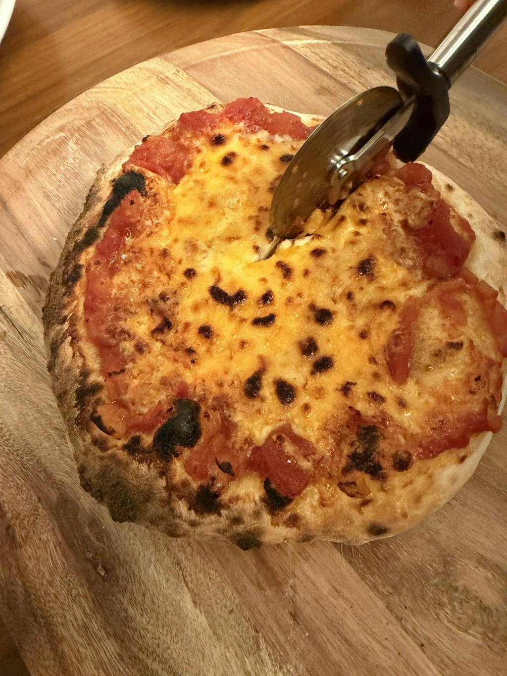 高温で焼くことで、ピザ表面の余計な水分を飛ばし外はカリカリ!