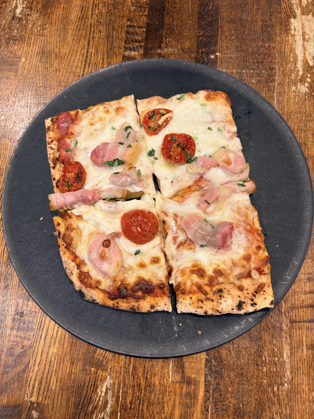 高温で焼くことで、ピザ表面の余計な水分を飛ばし外はカリカリ!