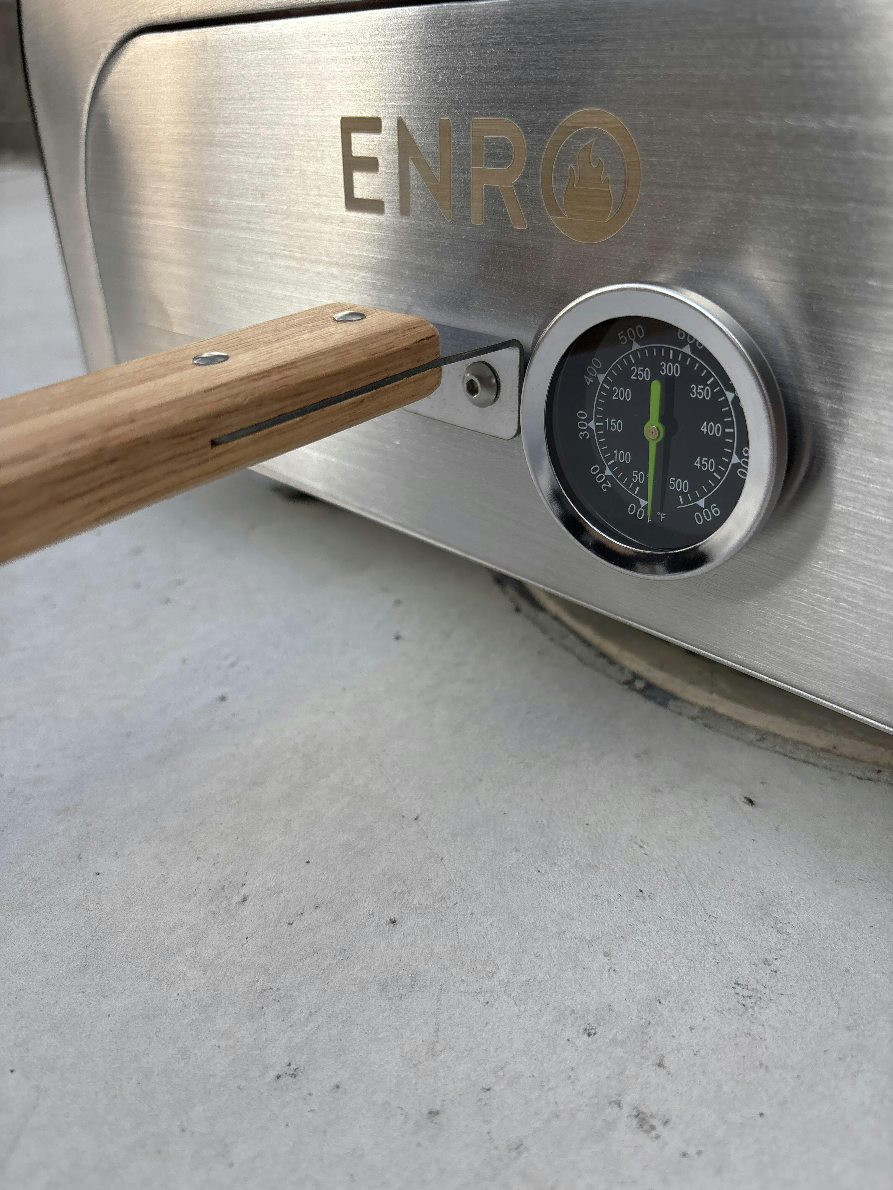 フロントドアの備え付け温度計のおかげで窯内温度が一目瞭然。どのタイミングで食材を入れるべきかわかりやすい!